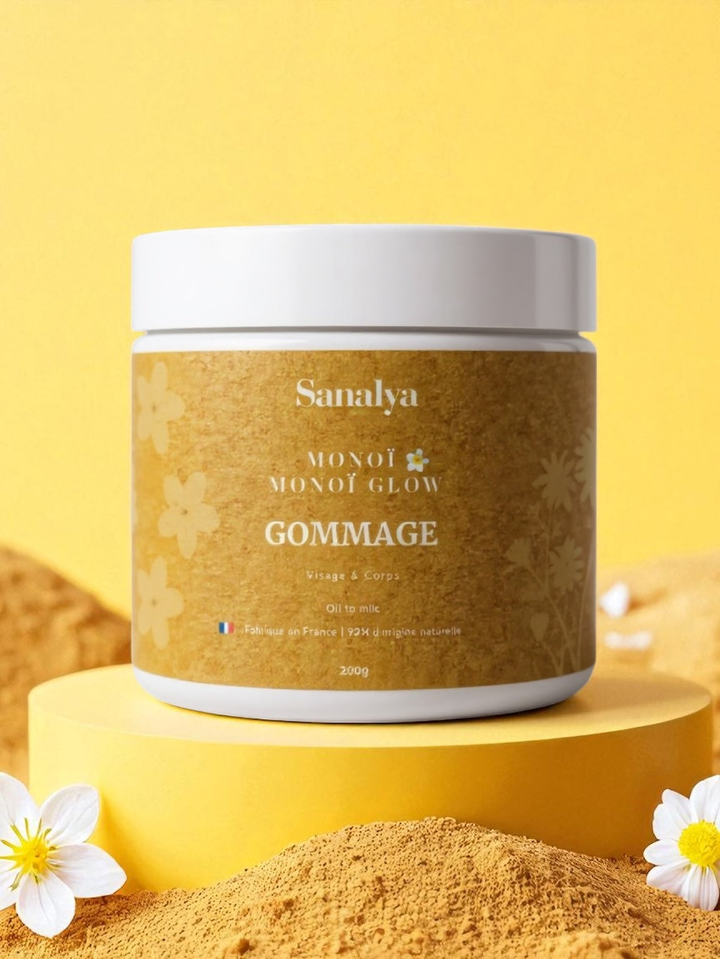 Évadez-vous sous les tropiques avec notre gommage Monoï, qui exfolie en douceur tout en enveloppant votre peau d’un parfum solaire et exotique.