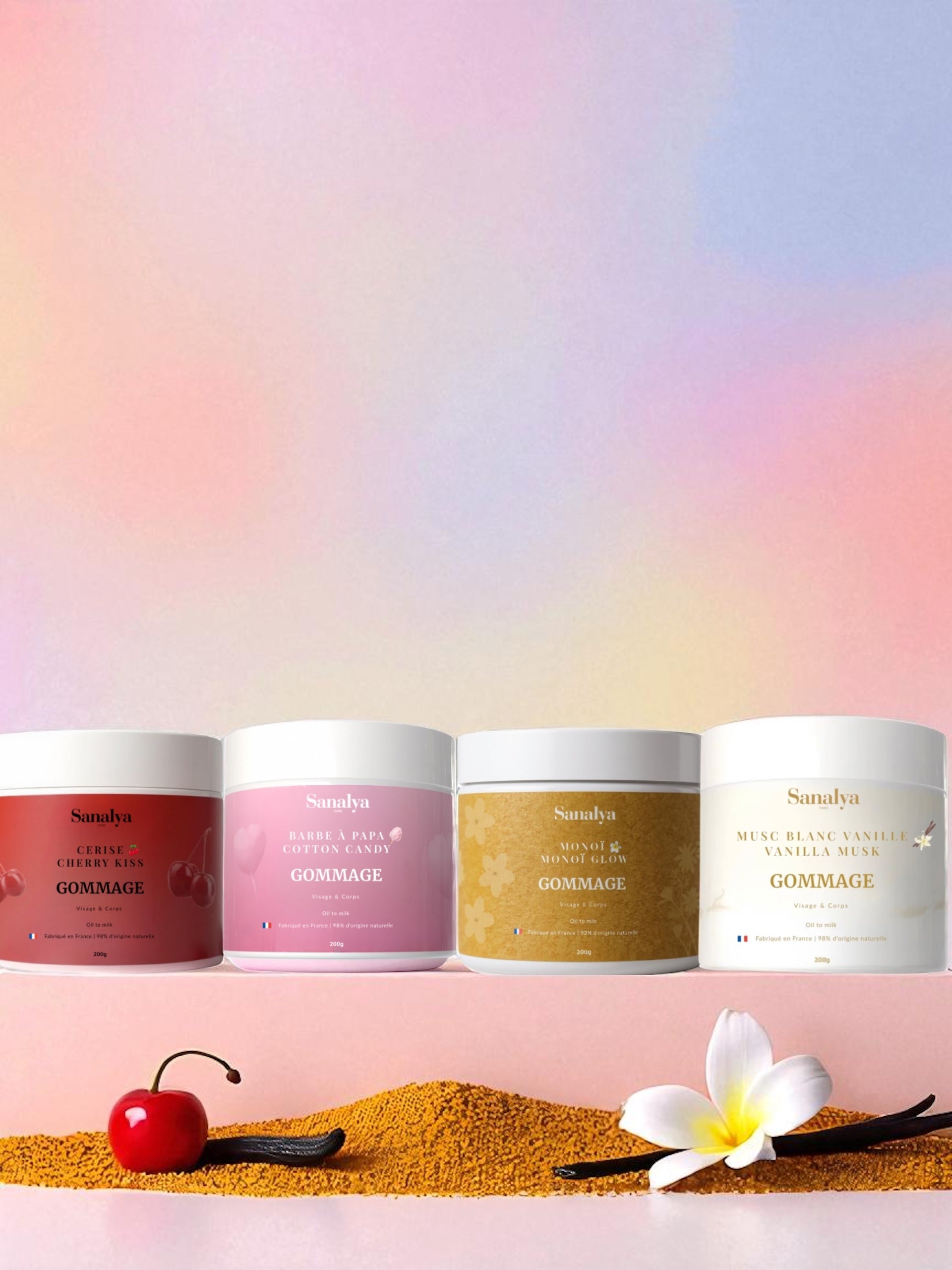 Offrez à votre peau un moment de douceur avec ce pack exclusif de 4 gommages parfumés.